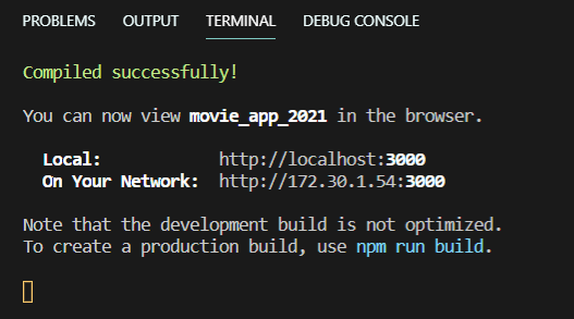 그리고 두개의 URL이 있는데 하나는 우리 컴퓨터에서 접속할 수 있는 Local과 Wifi URL을 주었다.(폰으로 테스트해보거나 하고 싶을 때 그 URL을 바로 사용할 수 있다)