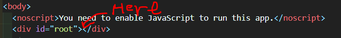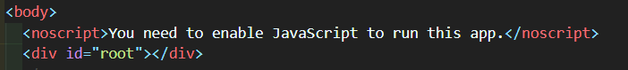그러나 public 폴더 안에 있는 index.html에서는 div id가 root인 박스 안에 아무것도 없다.