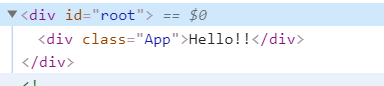 내가 src 안에 있는 App.js에 className이 App인 div에 hello라고 입력하고 npm start를 해서 localhost:3000으로 들어가서 개발자 도구로 확인해보면,