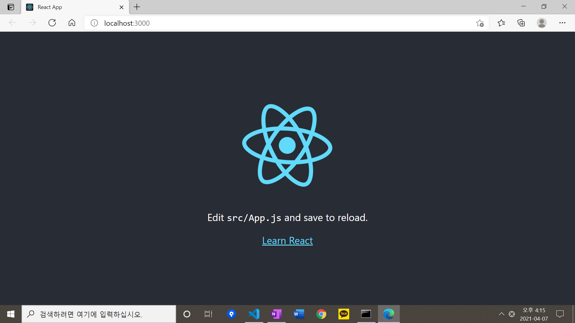 또한 create-react-app은 실시간으로 내가 작성한 것을 반영해주기 때문에 내가 수정하고서 저장하면 새로고침하면 자동으로 반영된다. (속도가 진짜 빠름)