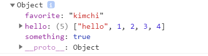favorite이라는 이름의 property를 kimchi라는 value로 준 것이라고 생각하면 된다. 프로퍼티와 값에는 어떠한 것도 올 수 있다고 생각하면 된다.