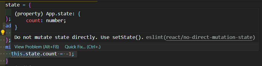 왠지 이렇게 작성하면 될 것 같지만 이렇게 작성하면 "직접 state를 변경하지 마시오"라는 메시지가 나오며, 또한 코드도 동작하지 않는다.